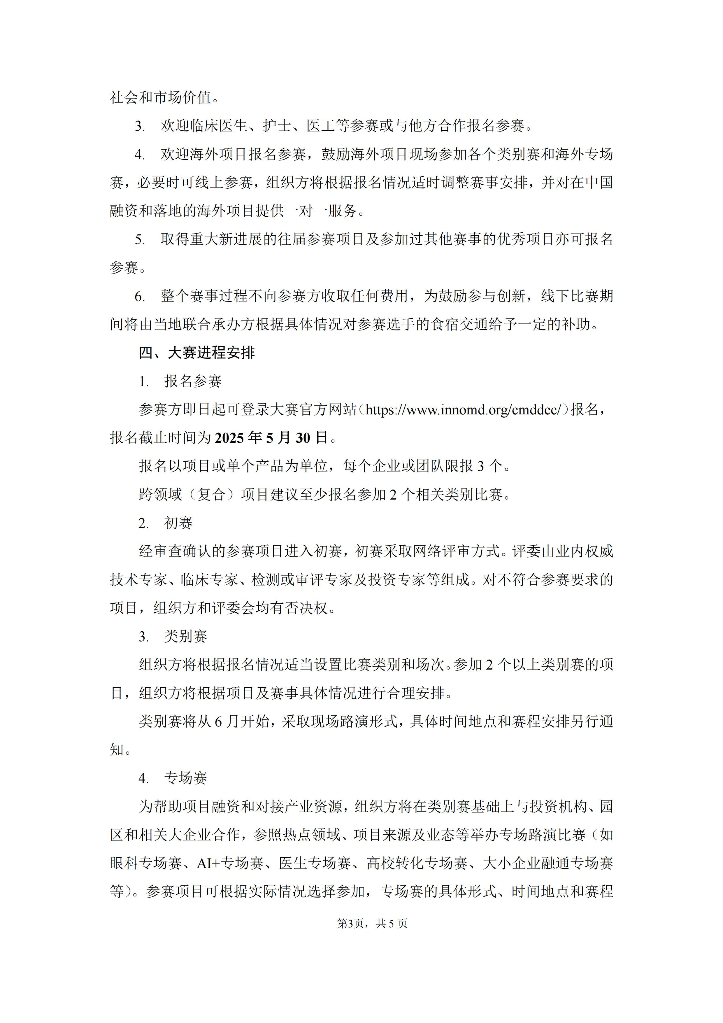 参赛方即日起可登录大赛官方网站(医疗器械创新网网://hongqiaokj.com/cmddec/)报名,报名截止时间为2025年5月30日。